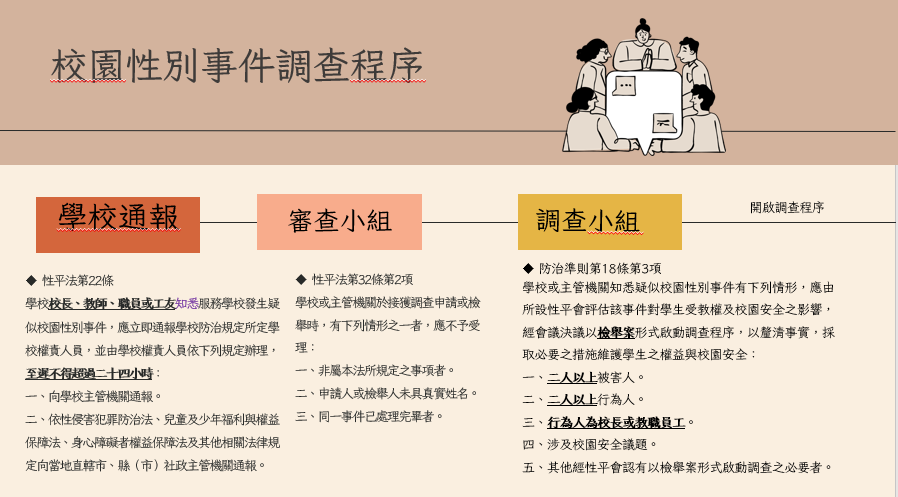 是我們校園性別事件的重頭戲-「調查」機制(噹噹噹~主角再次粉墨登場)